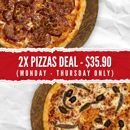 2x Pizzas Deal$35.90Large Traditional Pizzas or Medium Dessert Pizzas